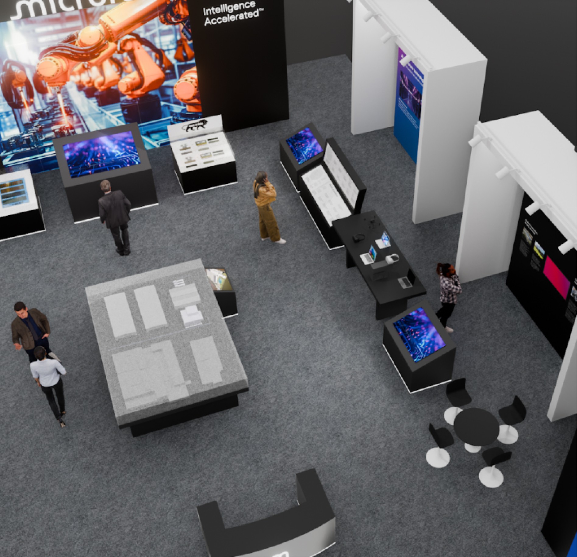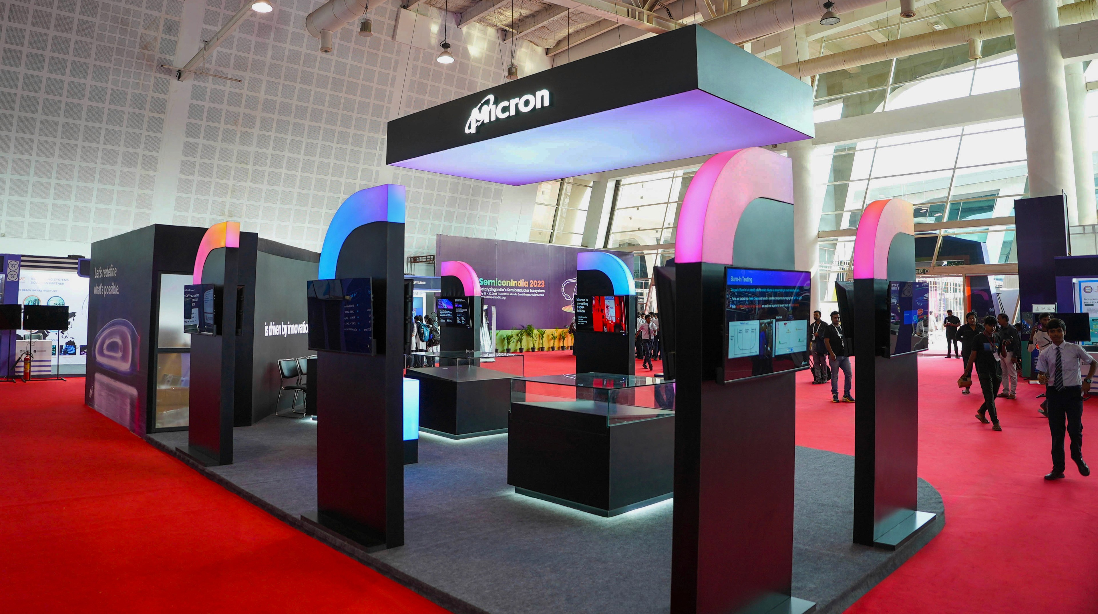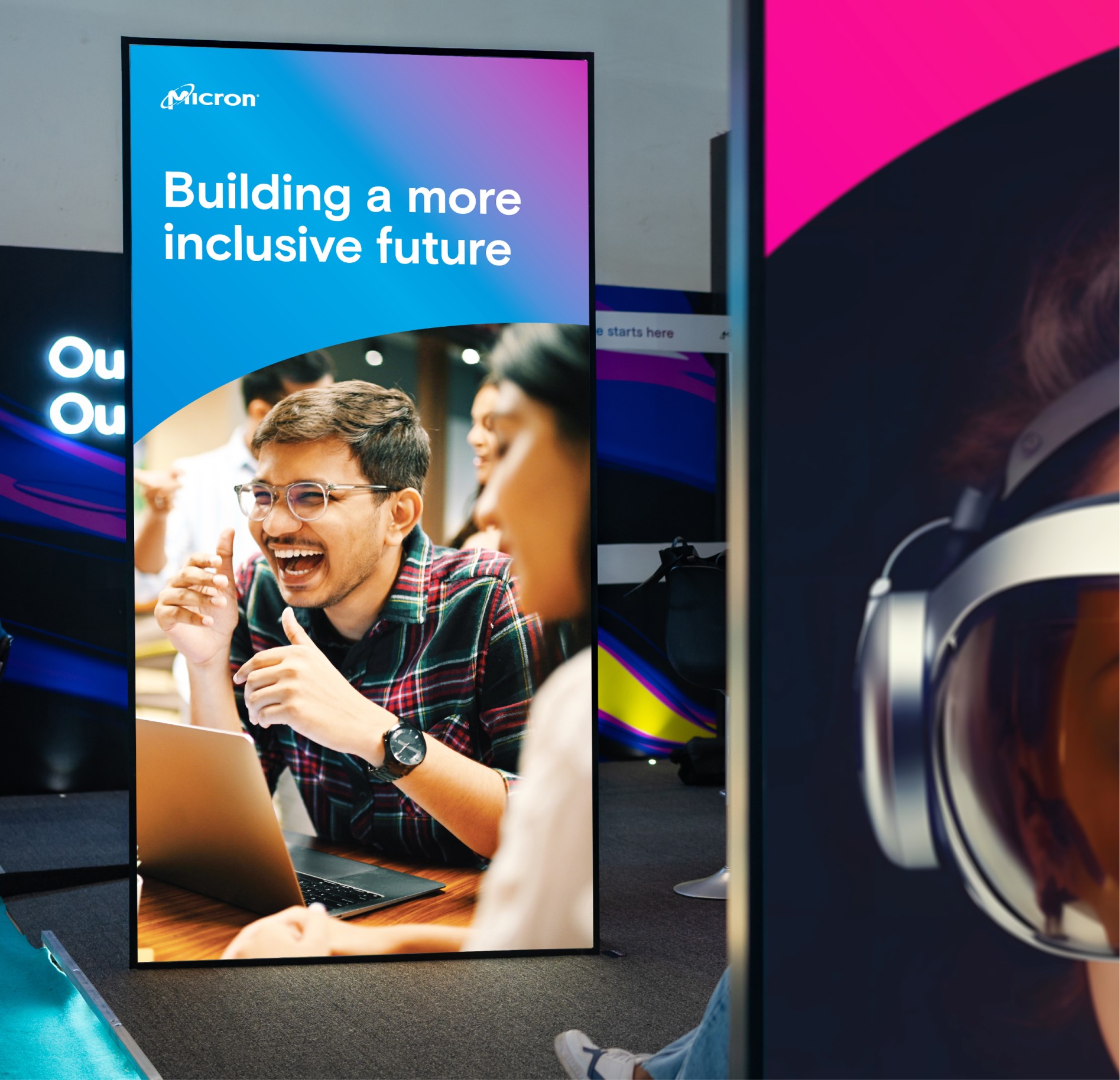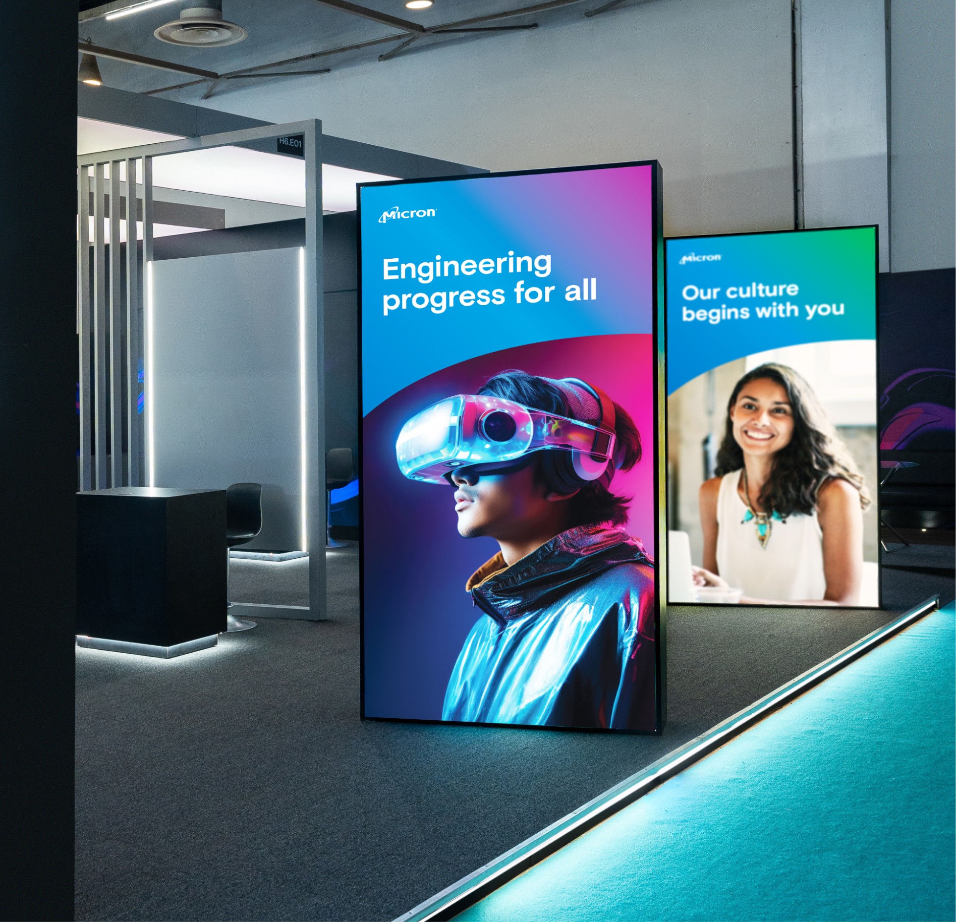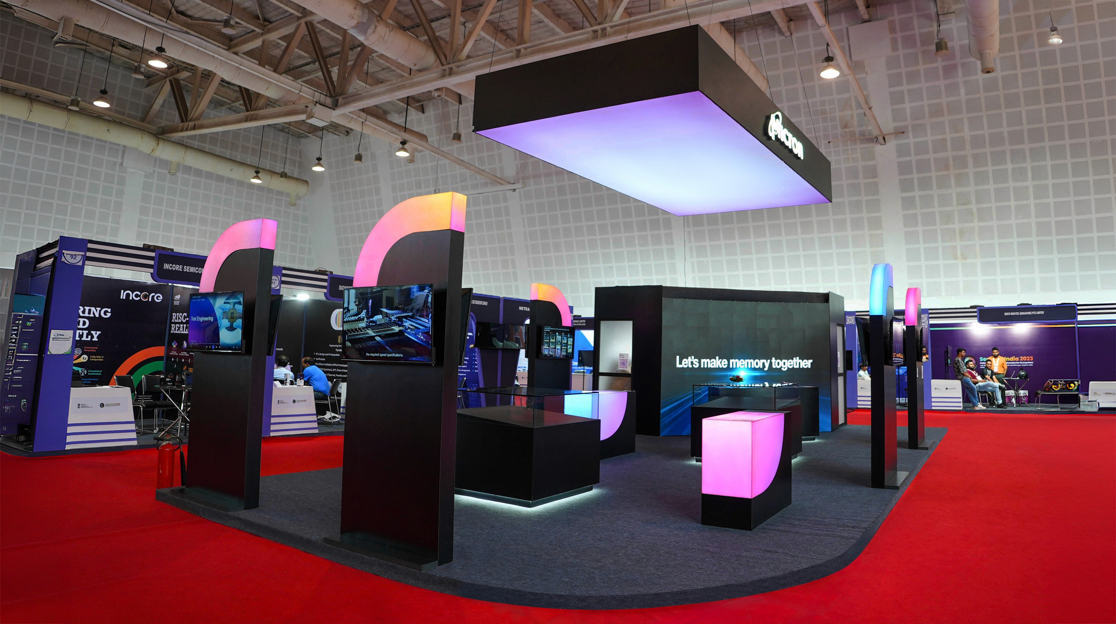 Micron, a multi-billion dollar global leader, sought innovative ideas for its pavilions at Semicon 2023, 2024, and 2025. Unlike stable office interior design, high-paced event environments require a different approach. While corporate interiors focus on creating a long-term immersive experience, high-profile events need to make an immediate impact and must be durable enough to withstand heavy foot traffic while competing with other industry giants. To navigate this challenge, we transitioned from static environmental graphics to a design language that captures the attention of government officials and competitors alike. By managing the entire process, from concept to physical build - in less than a week each year, we demonstrated that a strategic brand presence can be crafted with precision, even under tight time constraints.